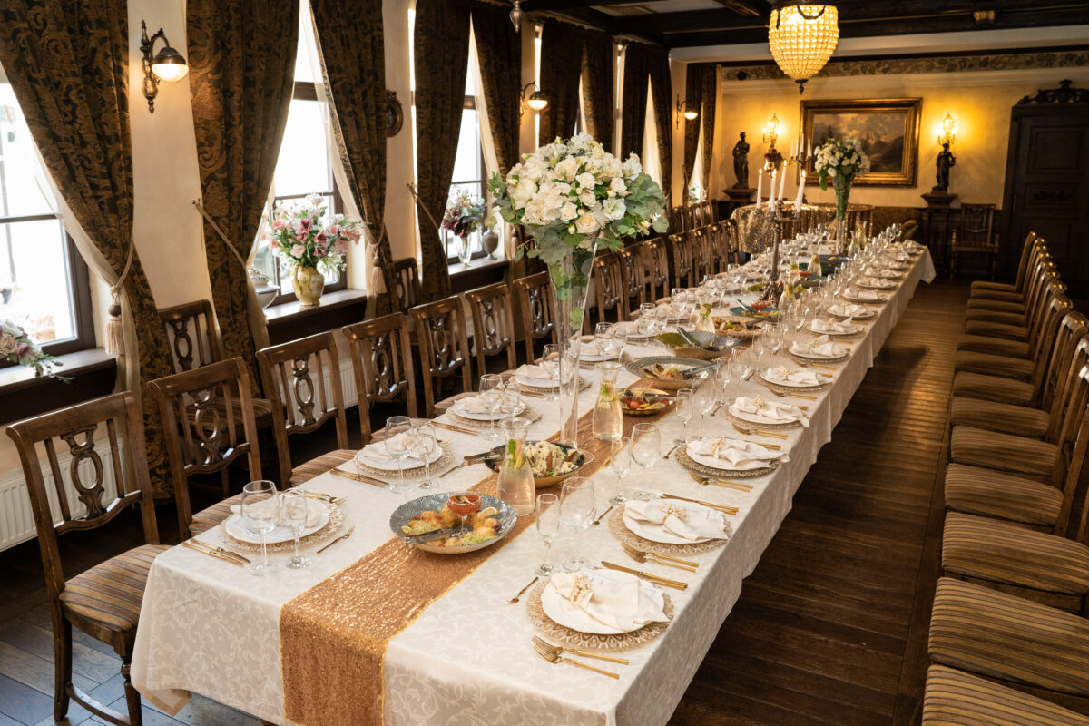 Mūsų pokylių menės erdvios, elegantiškos, tinkančios įvairioms progoms: gimtadieniams, vestuvėms, krikštynoms, jubiliejams ir kitoms jūsų šventėms!